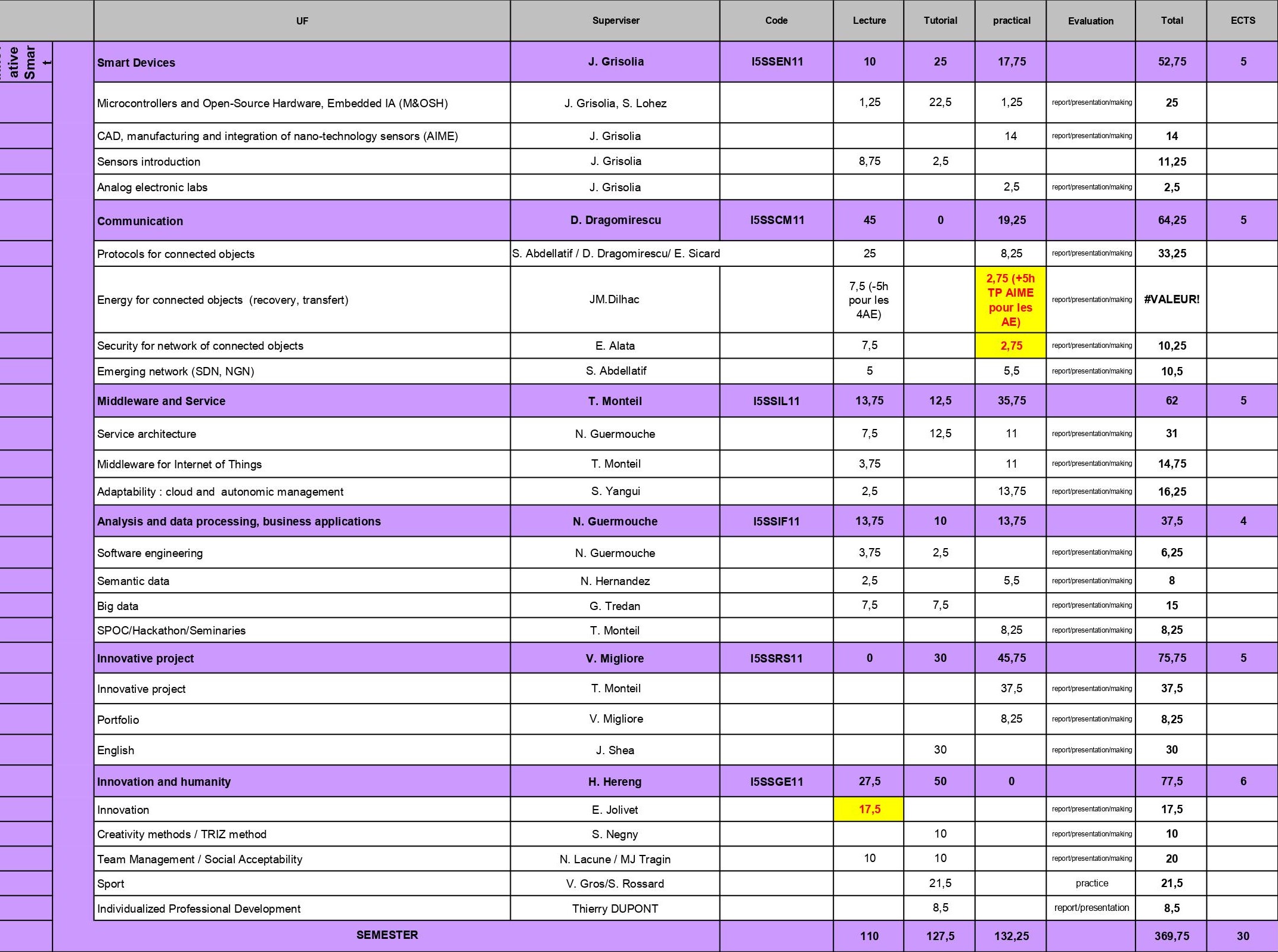 Voici la maquette 2021-2022 de la formation 5-ISS ci-dessous avec les différentes unités de formation suivies dans chaque module